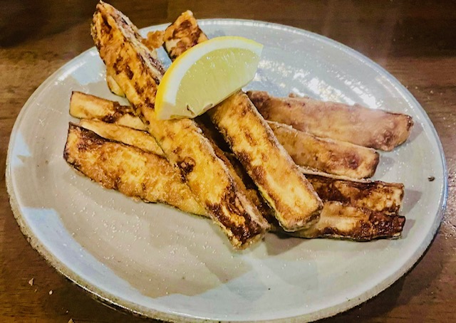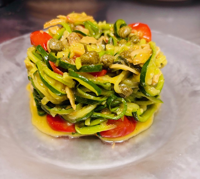 写真:トウモロコシのおつまみガレットとズッキーニのサラダ
